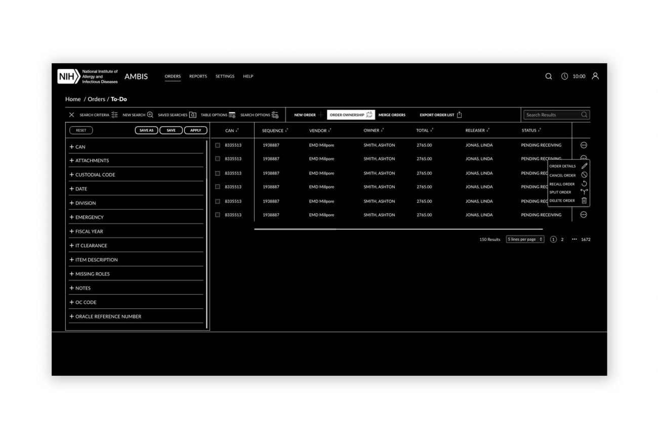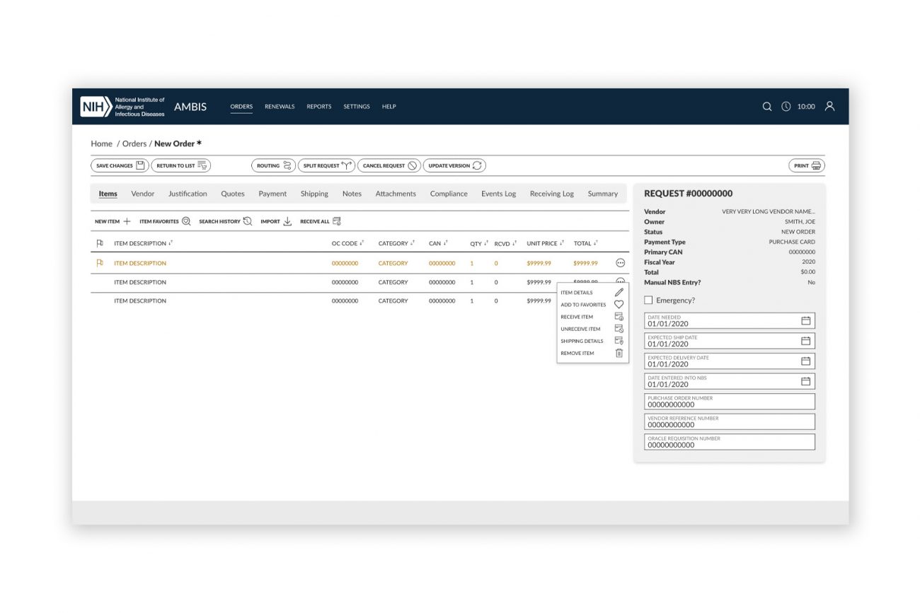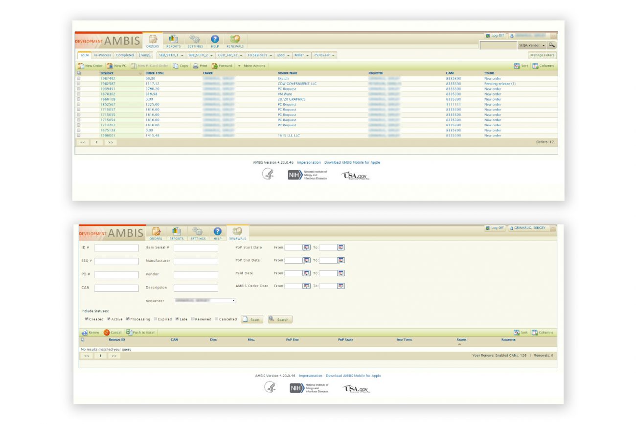 AMBIS is NIAID’s institute-wide requisition system used to submit, process, and fulfill purchase requests. The system us used to acquire a wide gamut of products, from office and lab equipment to software and maintenance contracts, conference fees, and more. It also aims to assist users navigate a myriad of government requisition procedures and regulations.