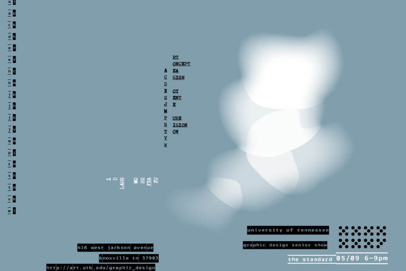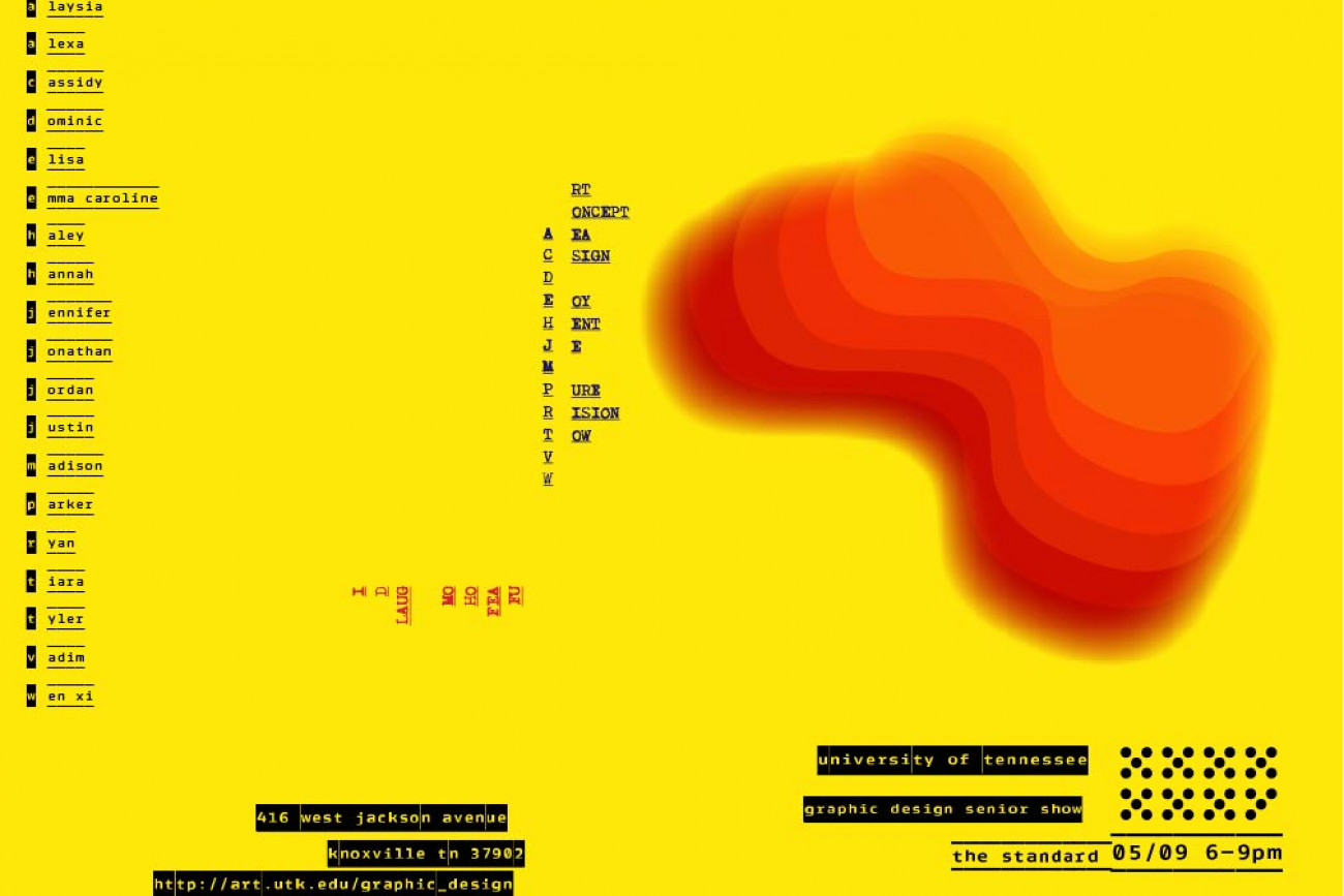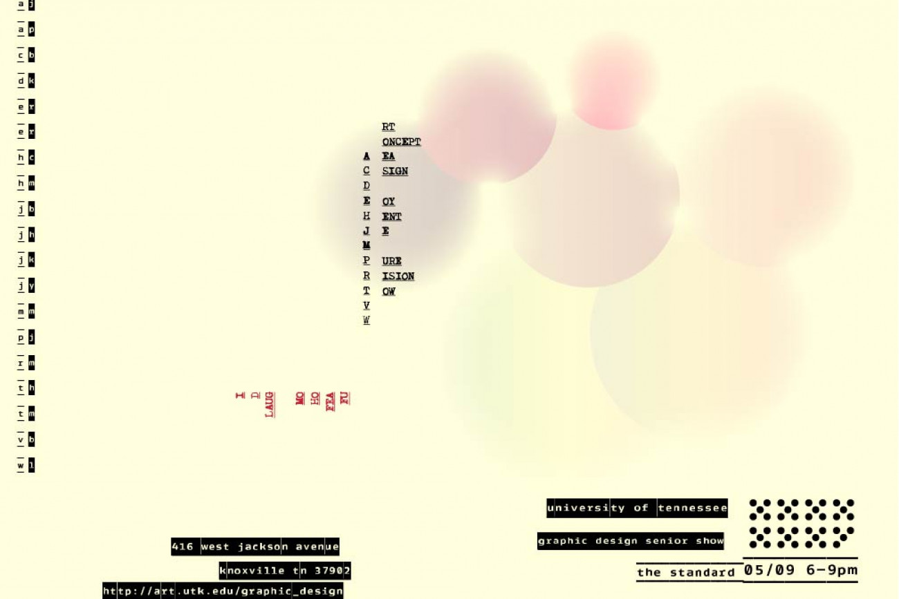 Set of invitations to graduating class students’ body of work showcase. Nineteen dots design element represents graduation year as well as the number of students in the class.