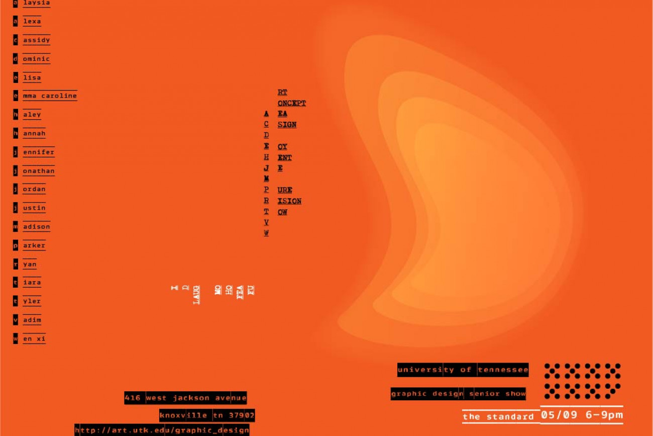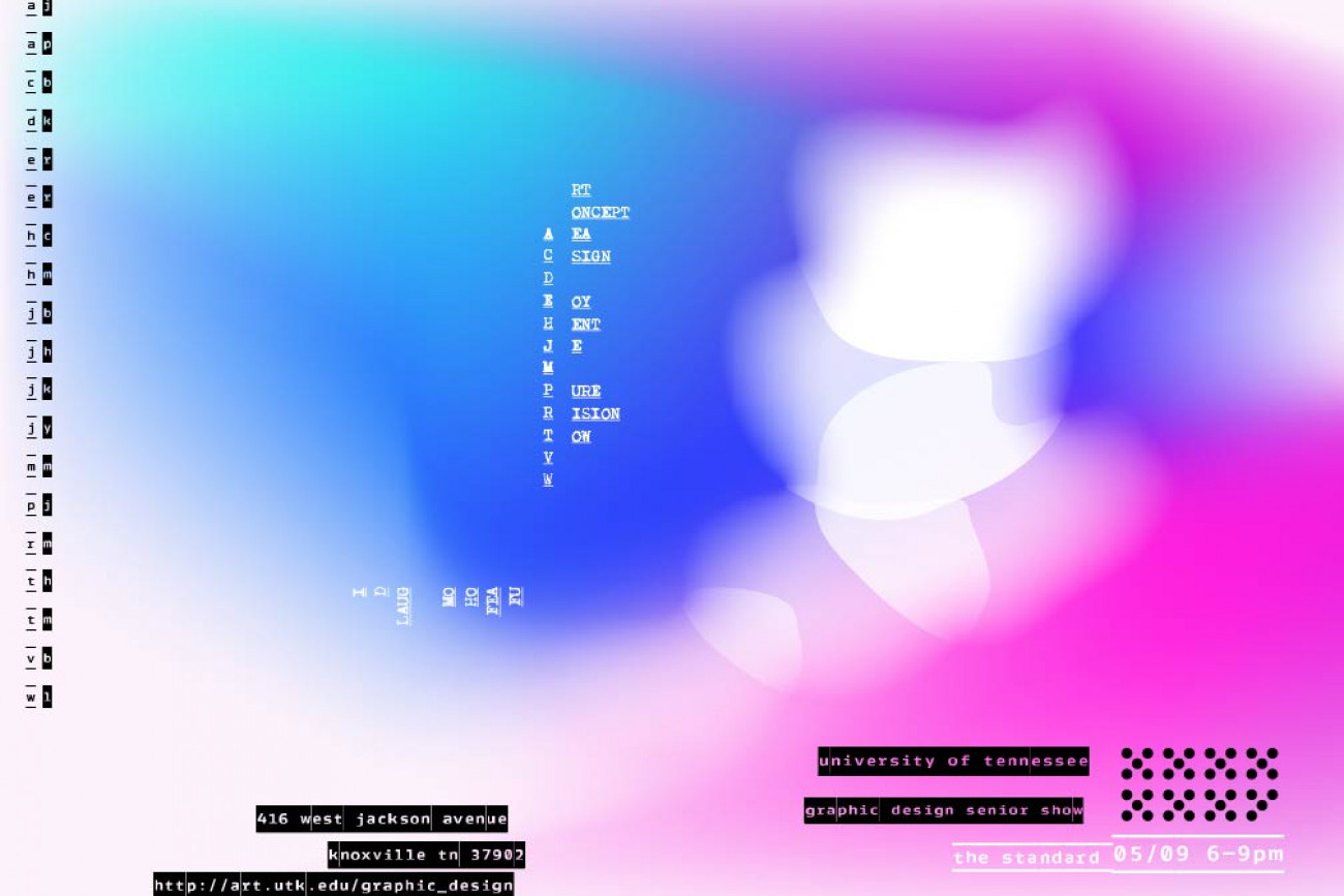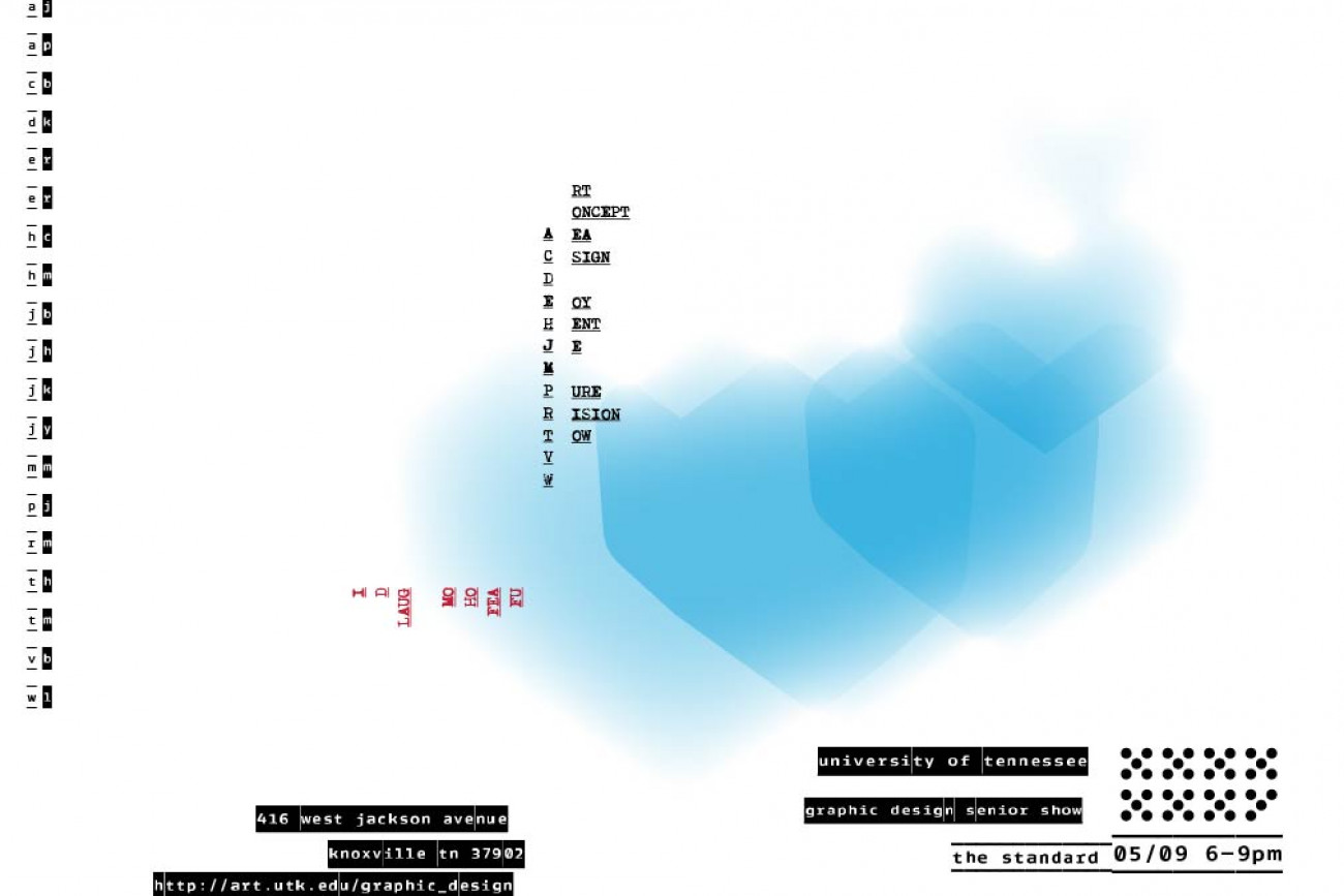 Set of invitations to graduating class students’ body of work showcase. Nineteen dots design element represents graduation year as well as the number of students in the class.